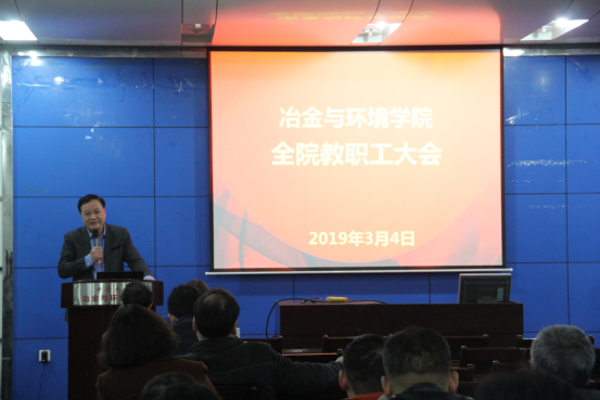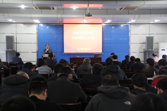 3月4日下午,Stake博彩 在冶金馆301召开新学期第一次全院教职工大会,明确新学期Stake博彩 改革发展方向,部署落实党建工作、学科建设等重点工作。全体教职工参加了会议,会议由院党委副书记张凯主持。