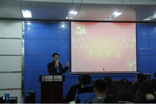 11月7日下午,Stake博彩 第六期发展对象暨支部委员培训班开学典礼仪式在冶金馆301室召开。Stake博彩 主持党委工作副书记田庆华出席了典礼、Stake博彩 党组织干事、培训班班导师侯晓华主持了典礼。23名党员发展对象与62名支部委员参与了典礼。