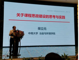 以教育部课程思政示范课程建设为契机,以点带面,形成了冶金环境工程特色课程思政教学体系,“特色冶金环境工程课程思政教学体系设计与实践”获2021年首届中国有色金属学会高等教育教学成果特等奖。团队成员王云燕获中南大学课程思政教学竞赛一等奖,正备战2021年湖南省普通高等学校课程思政教学比赛的决赛。总结凝炼形成的教学成果“关于课程思政建设的思考与实践”受邀于2021年7月25日在湖南省高校一流课程建设研讨会做大会报告(图2),获得与会专家的高度关注,产生了良好的示范效应。