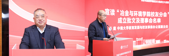 教育发展与校友事务办公室副主任杨鹰宣读了“Stake博彩 校友分会成立批文及理事会成员名单”。中国有色金属工业协会原会长康义和原长沙市市长杜远明当选为名誉会长,格林美股份有限公司董事长许开华和Stake博彩(中国区)唯一官方网站 院长闵小波当选会长。