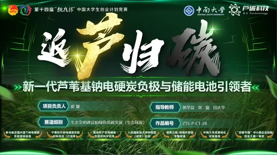 该项目致力于“美丽中国”建设,聚焦于低成本高性能生物质硬炭材料,针对硬炭负极成本高、工艺繁琐、产品性能低的行业痛点,提出洞庭湖的废弃芦苇生物质综合利用制备钠电硬炭负极的解决方案,将芦苇等植物资源转化为高附加值的新能源材料,不仅实现了资源的循环利用,还有效地推动了低碳经济的发展,该项目最终也夺得主体赛生态文明建设和绿色低碳发展组别金奖。