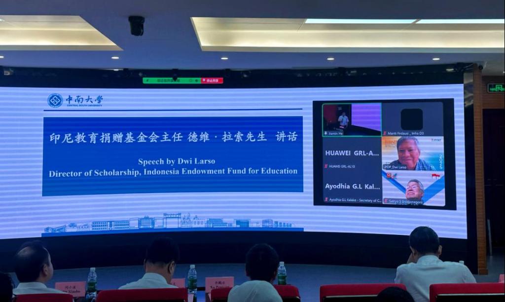 印尼工业基础设施部秘书长阿约迪亚·卡拉凯通过视频连线发表讲话。他强调,印尼正大力推动矿产下游产业链发展,亟需湿法冶金等领域的专业人才。他、对中南大学与格林美集团为印尼学子提供的优质教育机会表示感谢,并期待未来进一步深化合作,为印尼工业现代化培养更多精英。