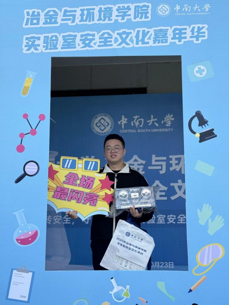 此外,活动现场还设有主题拍照打卡区,师生手持“实验安全小达人”“我爱中南大学”等趣味标牌合影,进一步营造了“人人讲安全、处处重防范”的良好氛围。