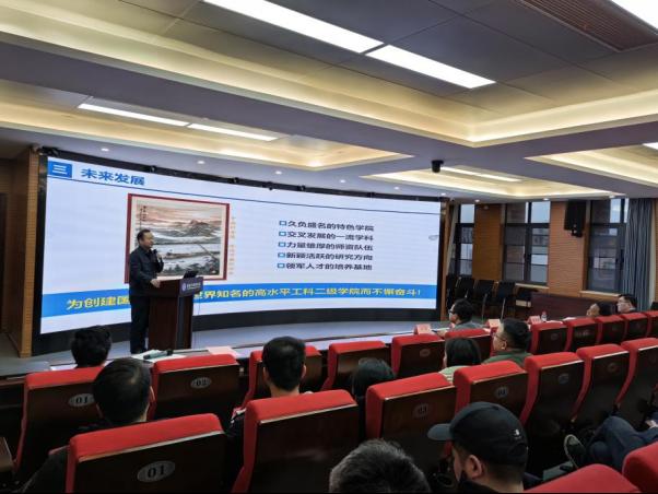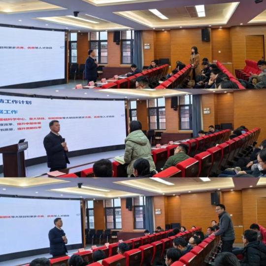 随后,刘恢副院长做了2023年度Stake博彩 科研工作总结暨2024年度工作安排。在对Stake博彩 科技创新现状进行了深入探讨和思考的基础上,围绕高质量论文、科技奖励、高水平人才、重大项目等方面提出了24年的目标与规划,并希望青年教师作为科研生力军在踏实科研的过程中也应多抬头看路,积极学习国家科技政策,抓住机会,借力发展。
