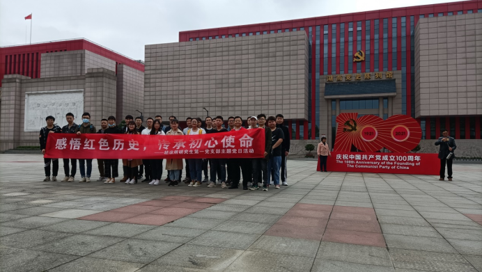 为庆祝中国共产党成立100周年,回顾党的光辉历程,激励广大党员继承和发扬党的光荣传统,牢记初心使命,增强学生党员的凝聚力和战斗力,2021年4月20日,Stake博彩 轻冶所研究生第一党支部组织全体党员参观湖南省党史陈列馆,开展主题党日系列活动,接受党史教育和精神洗礼。