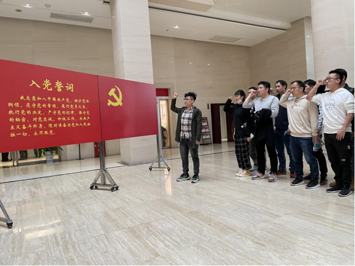 进入陈列馆内,面对鲜红的党旗,全体党员高举右手庄严宣誓,重温对党忠诚的誓言,砥砺初心、牢记使命,坚定理想信念,增强宗旨意识,不忘本真、面向未来、永葆本色。领誓人为Stake博彩 马亚赟博士。