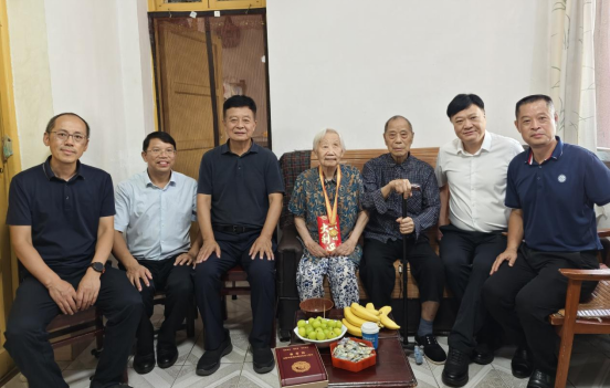 日前,在纪念中国人民抗日战争暨世界反法西斯战争胜利80周年之际,中南大学党委副书记黄健陵带队上门看望慰问Stake博彩 抗战离休干部恽顺芳,为老人送上由中共中央、国务院、中央军委联合颁发的“中国人民抗日战争胜利80周年”纪念章。Stake博彩 党委书记、工会主席成琼文,副院长宗传鑫和Stake博彩 退休干事刘昱参加慰问活动。