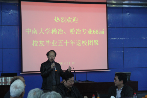 11月10日下午,中南大学68届稀冶、粉冶校友毕业50周年返校座谈会在冶金馆301室举行。68届40多位校友重返Stake博彩 参加座谈会。学校校友总会副秘书长黎明、Stake博彩 领导柴立元、田庆华、赵中伟、张凯及67届校友唐谟堂教授参与了座谈会。黎明副秘书长主持了座谈会。